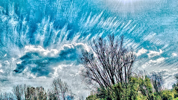 Father Ships can also produce uniform mid level cloud based Radionic Fields like the Mother Ship Field of Figure 34 in Starrgram 5. However, being Positive in polarity, the uniform Father Ship spray can be even more decimated. The following highly decimated Father Ship reflection was photographed by the friend of the cause near Huntsville on June 18, 206. Don't know what's going on down there at the bottom of the Figure, but it sure looks like the whole galaxy is in for a meet.