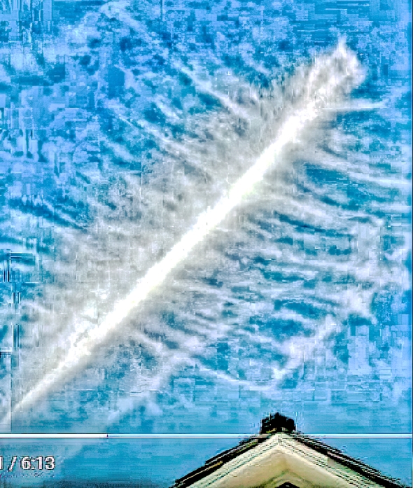 To confirm the phenomenon, a yet similar Father Ship frilly centipede was found in yet another Internet search. There must be dozens of these going on world wide at any given time for two to have come up so similar on the web just by open chance surfing. The Contrail passing through has nothing to do with the Ship, and the plane's pilot and/or crew, and/or passengers probably never even noticed it.